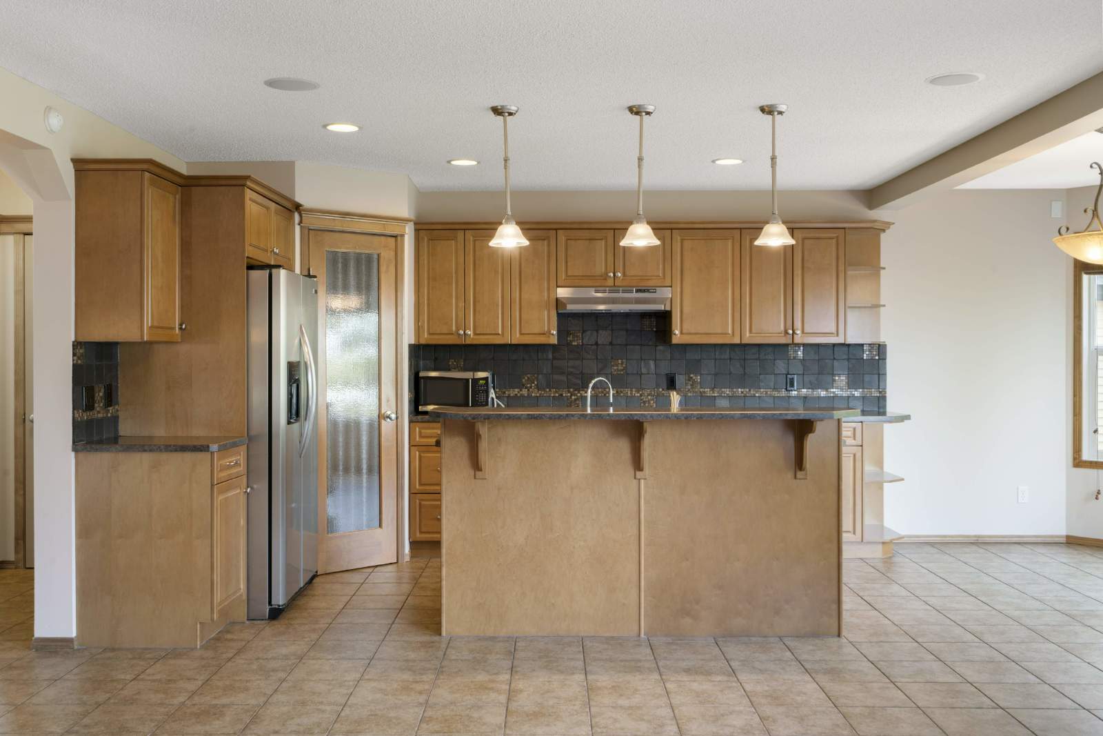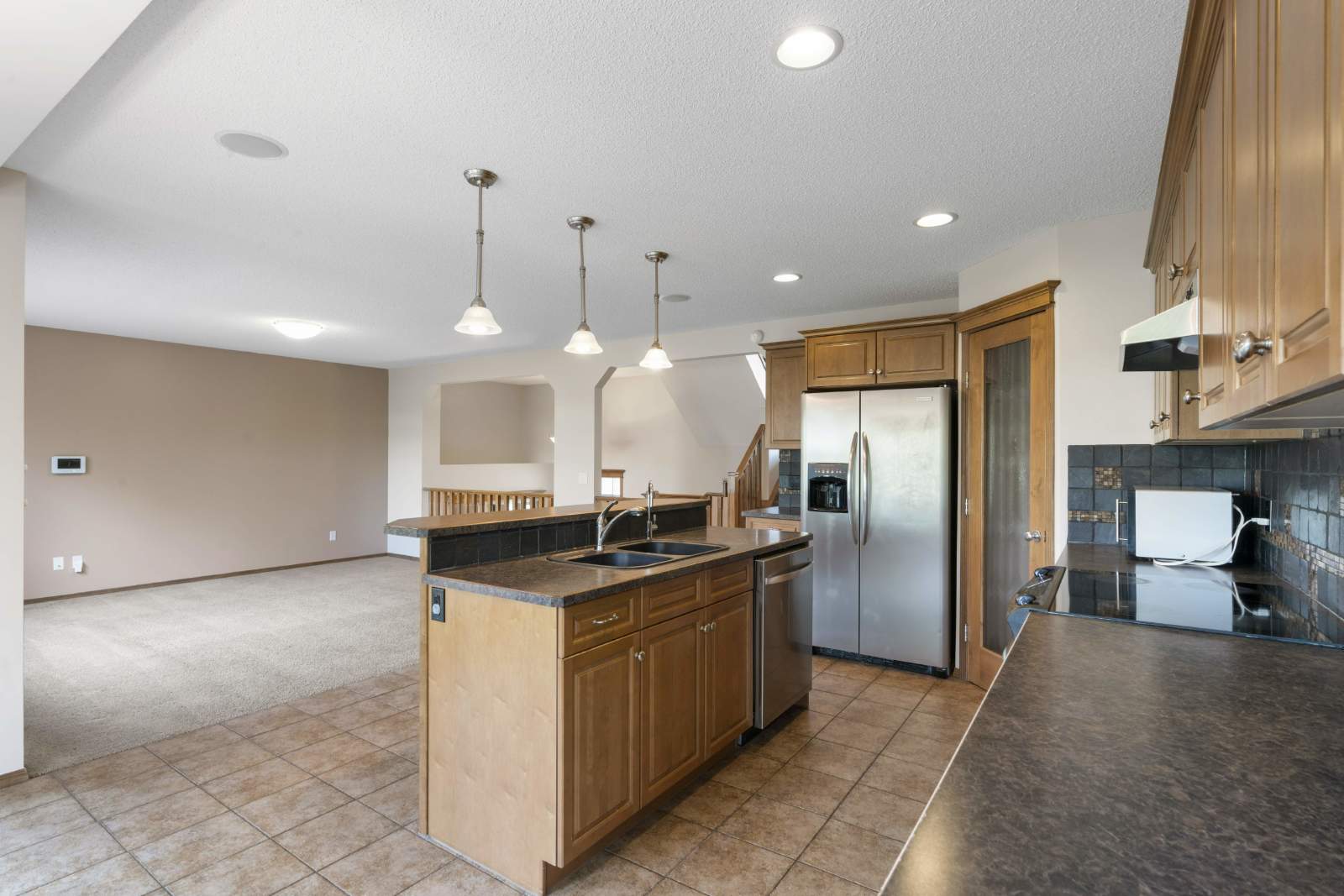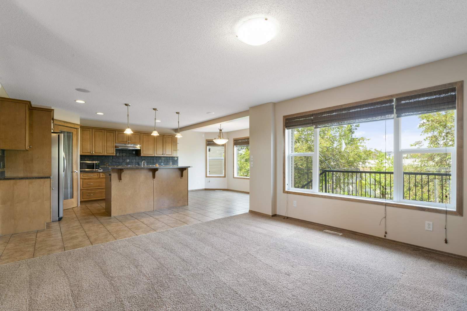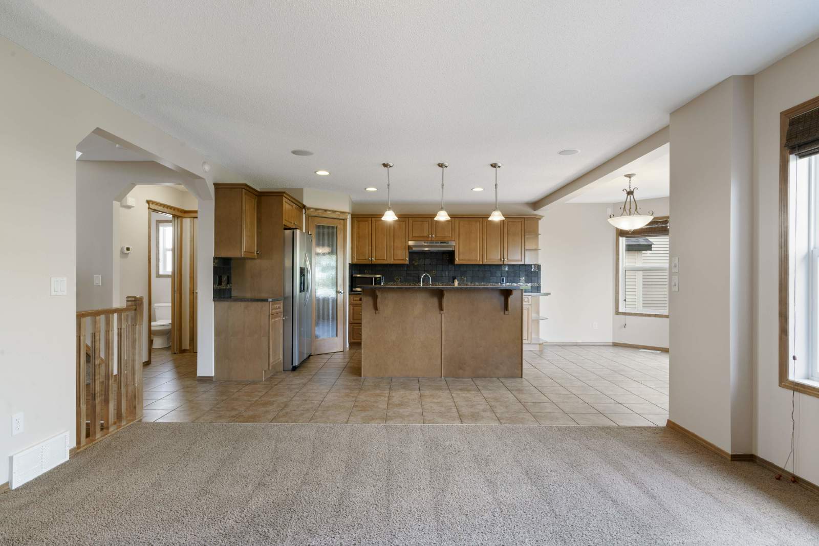 -Open main floor features living room, dining room and kitchen with breakfast bar.