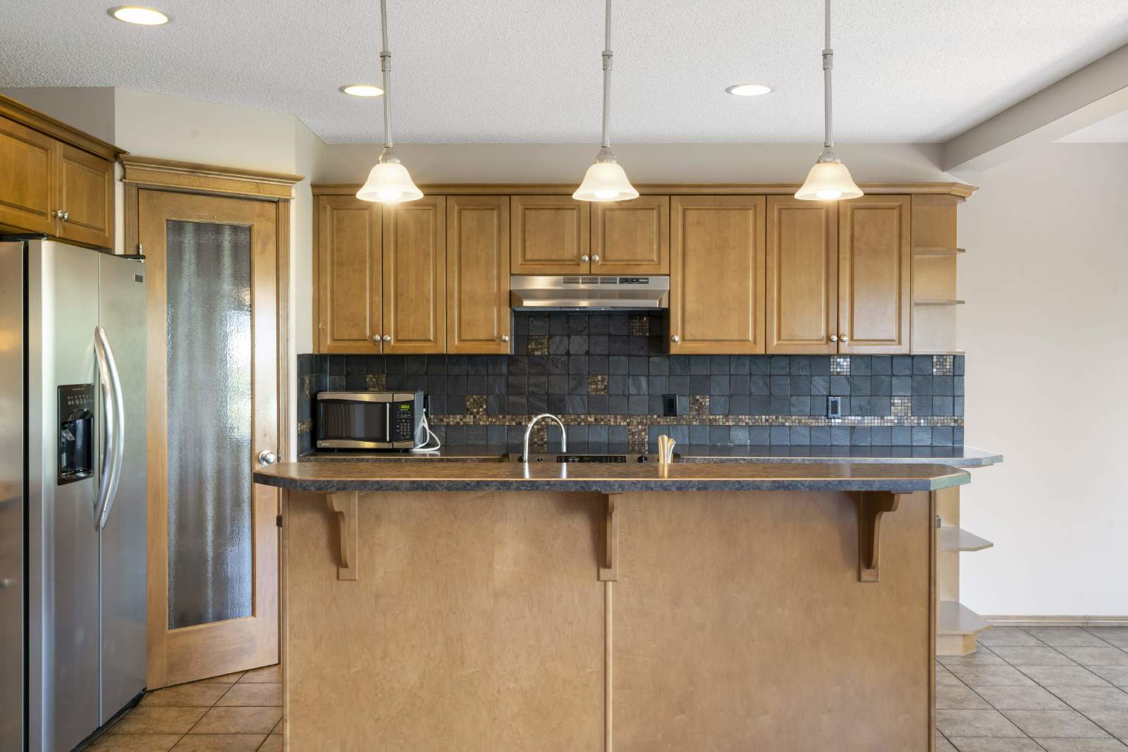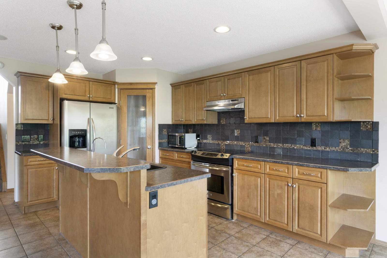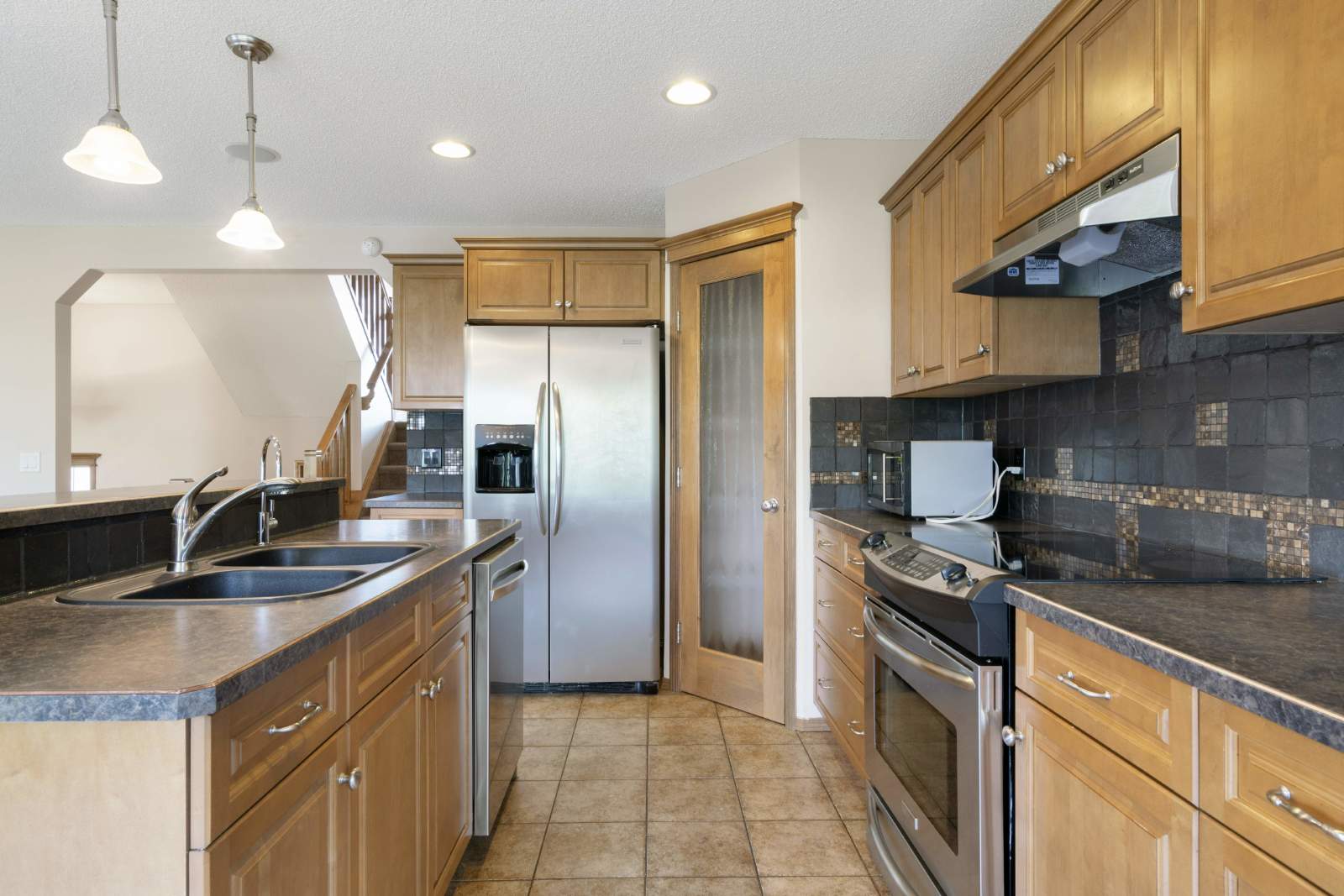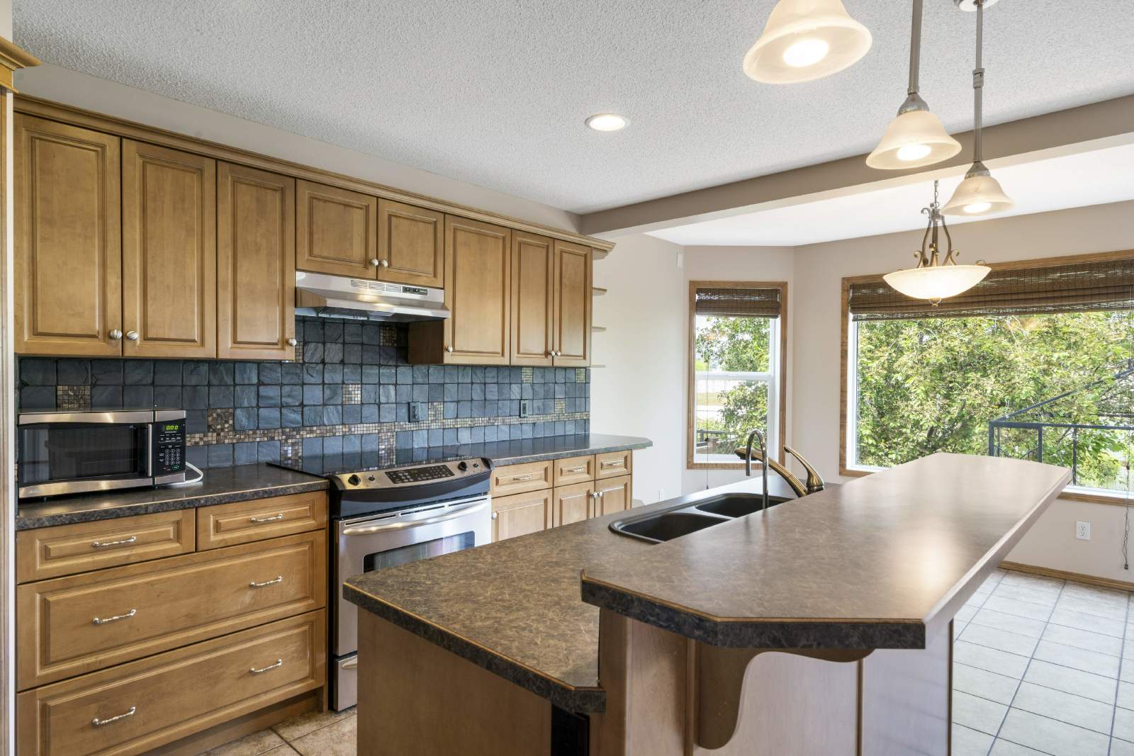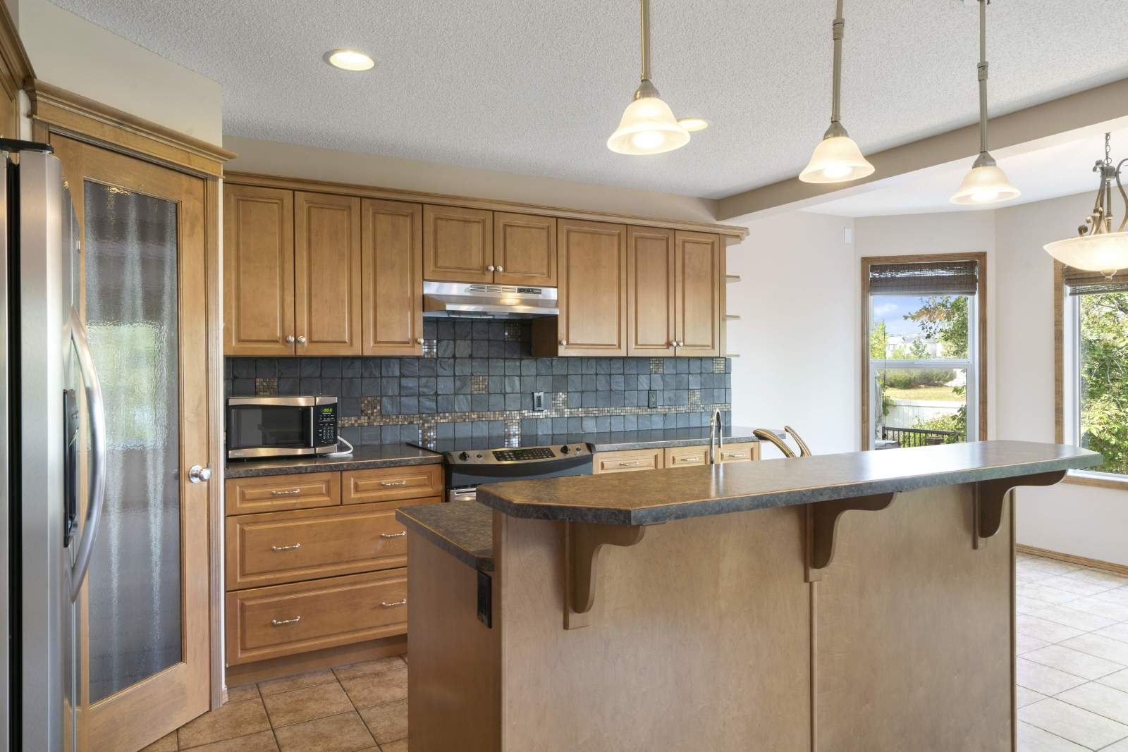 -Open main floor features living room, dining room and kitchen with breakfast bar.