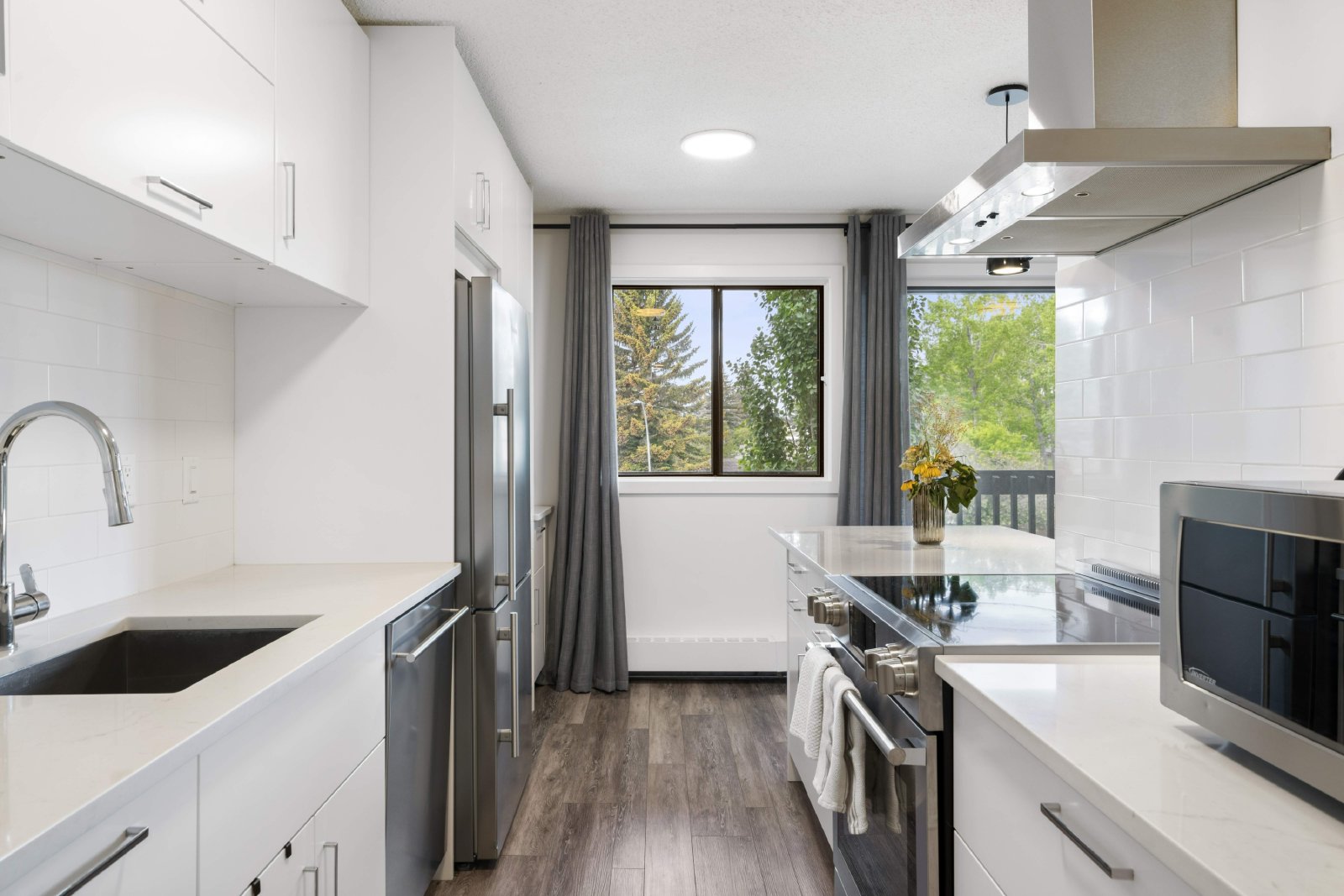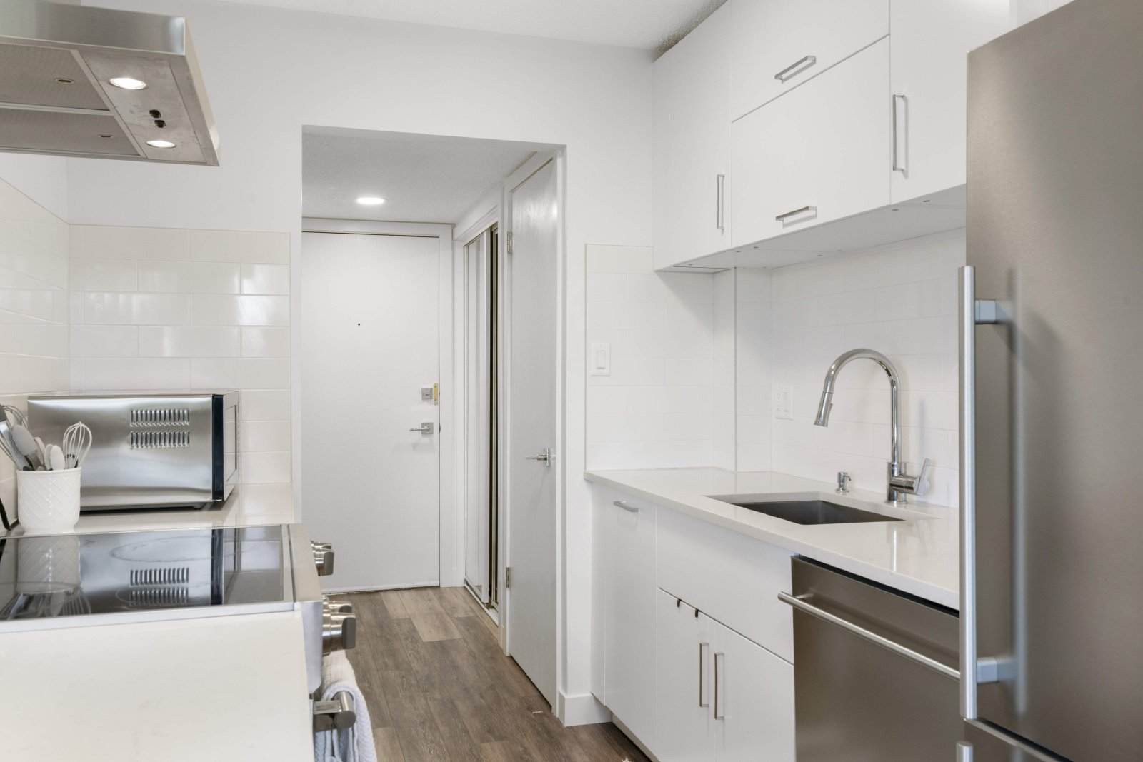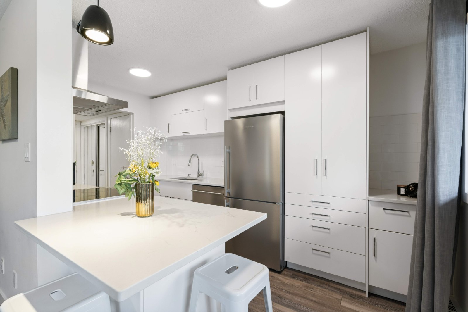 Kitchen has beautiful built-ins giving a stunning sleek look