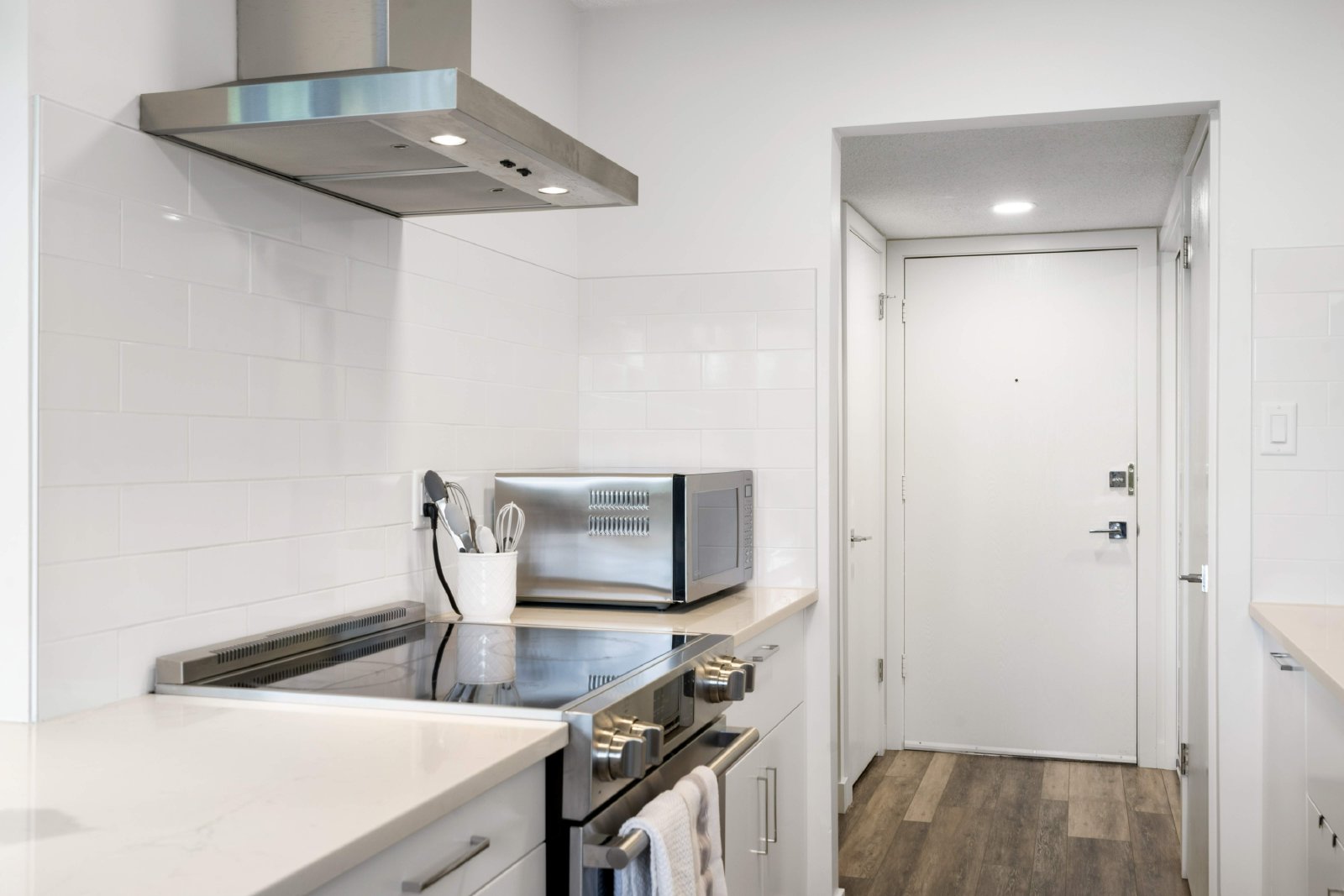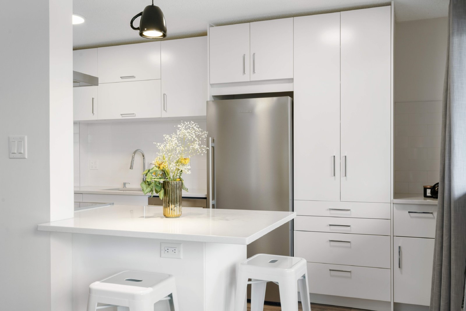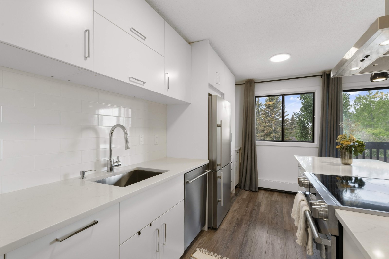 Kitchen has beautiful built-ins giving a stunning sleek look