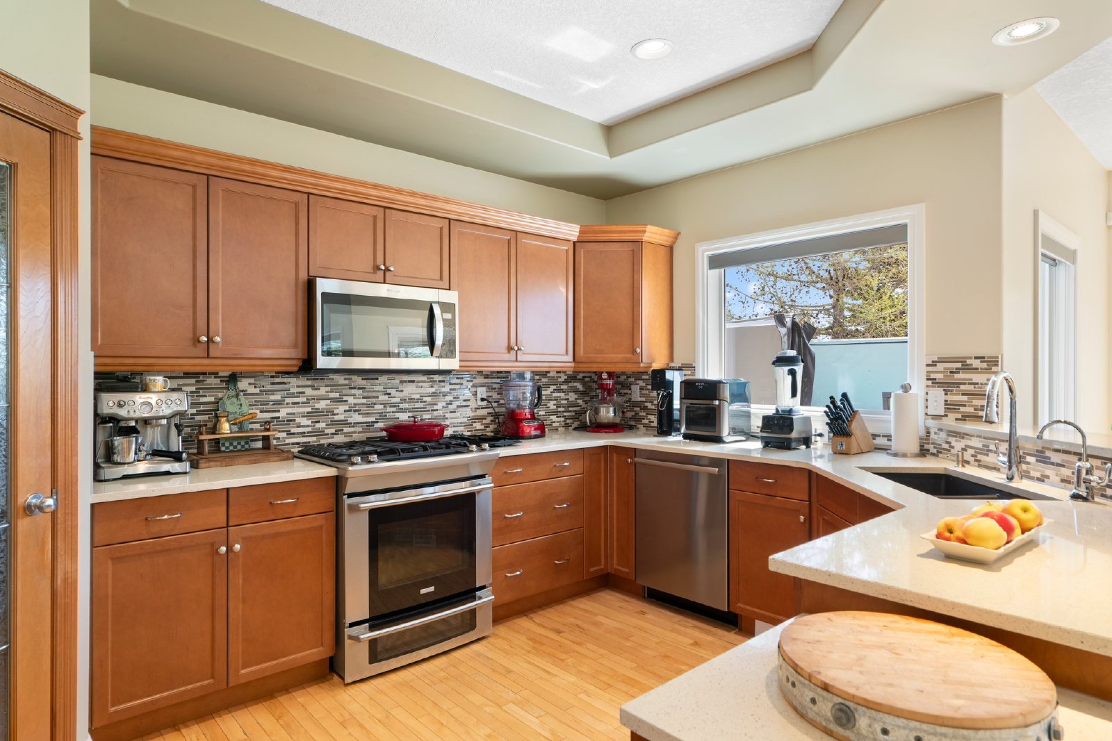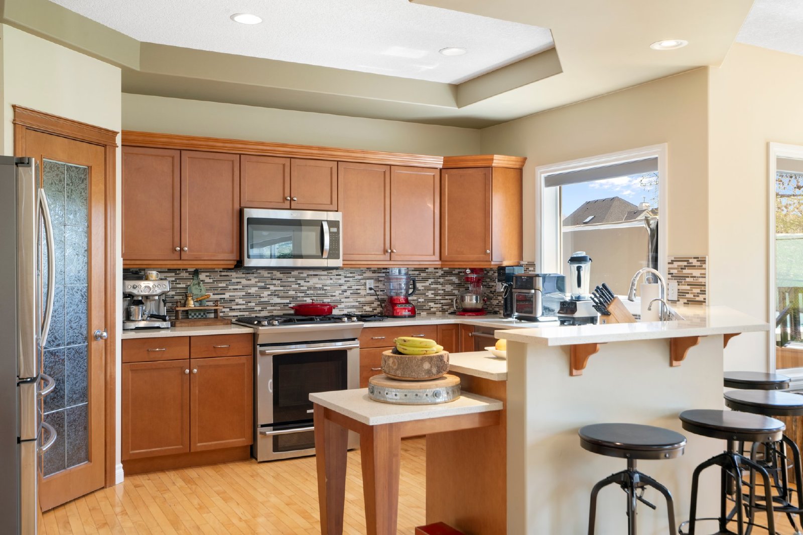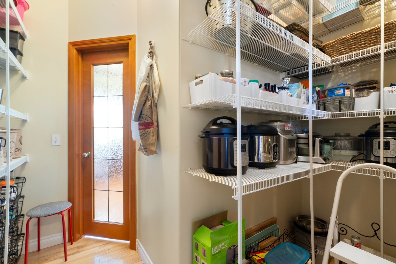 -Kitchen features large island, stainless steel appliances, gas stove and large walkthrough pantry