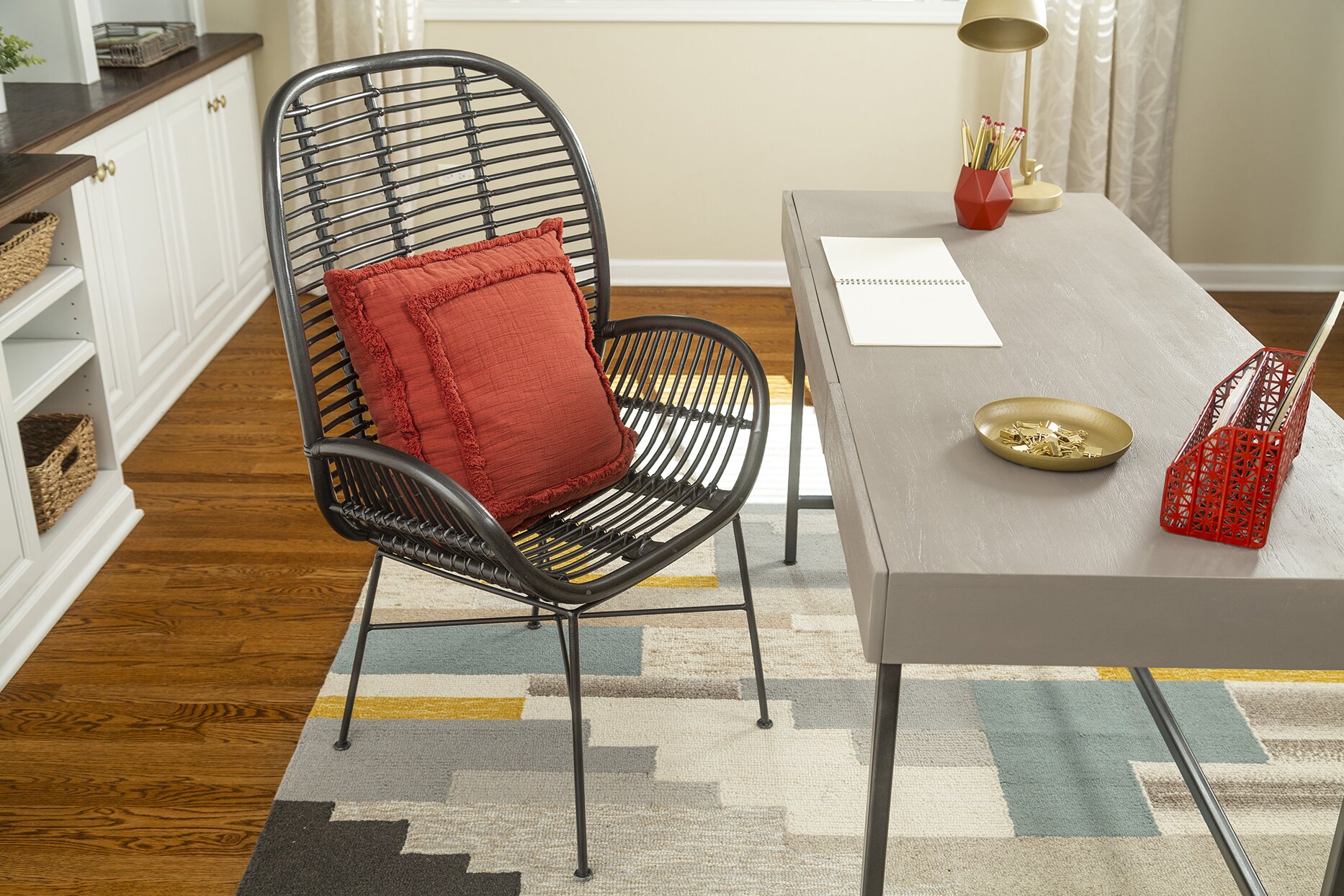 To bring out the colour’s organic feel, Wadden suggests decorating with furniture made from natural materials, including wood, stone, and woven fabrics. For depth, choose accents that supply a variety of textures, such as worn leather, faux sheepskin, and aged metals. The paint colour is available at Sherwin-Williams stores nationwide.